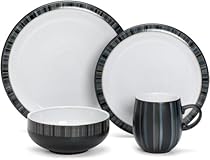 More details from amazon »Denby JST-100 Review: Denby Jet Stripes 4-Piece Place Setting, Service for 1. I absolutely love these dishes. They are nice enough to be used for daily or special occasions. I decided to splurge on these dishes instead of getting separate sets of daily and fine china. They also have a nice weight to them. After four years I have only had a few small chips in the entire set of 12. I would definitely purchase Denby products again.0 of . Full reviews at amazon »