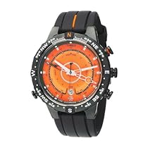 Timex T49706DH Electronic compass with analog display, Tide/Temperature scales on dial, Indiglo® night-light, Silver-tone hands with luminous accents, Silver/black indicator hands with luminous accents, Luminescent dot and silver-tone baton markers, Black indices mark seconds track, Analog date aperture at 6, Turning compass ring with declination scale, Large black stainless steel round case, Black steel crown and selector buttons, Stainless steel caseback, 100 meters/330 feet water resistant Accurate electronic compass, tide tracker and temperature sensor Comfortable rubber strap ...